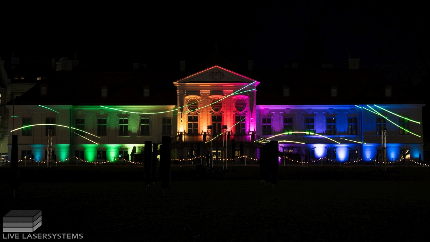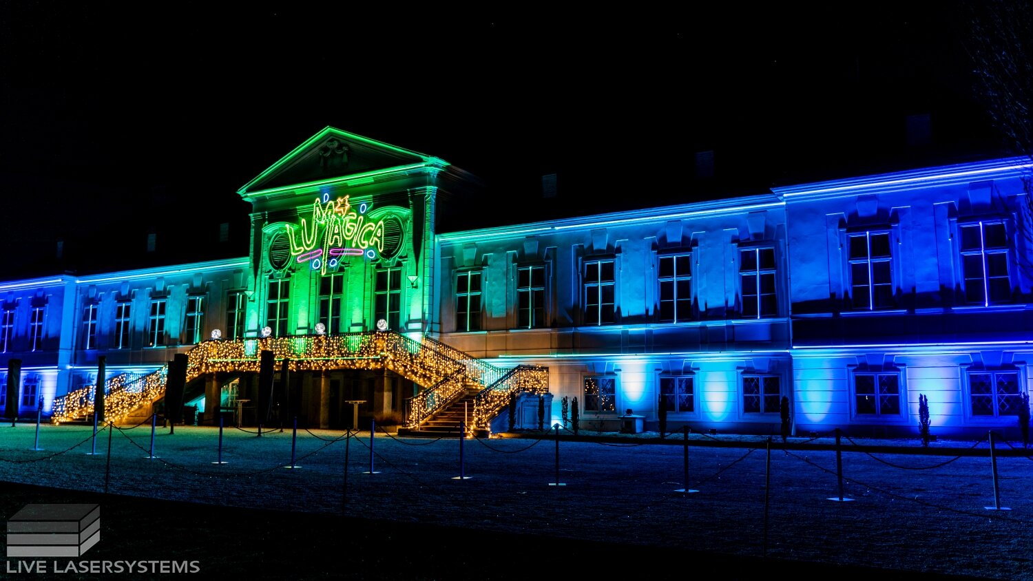 Over a period of over 2 months, 4x KORE 10 worked together to create a laser projection mapping onto the Miller-Aichholz palace as part of Lumagica Vienna. The display area spanned over a total length of over 52m. The laser projectors were housed in our own special developed outdoor housings to withstand freezing temperatures, rain, snow and even storms.