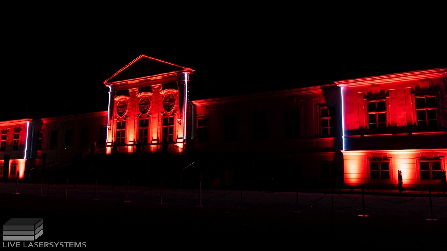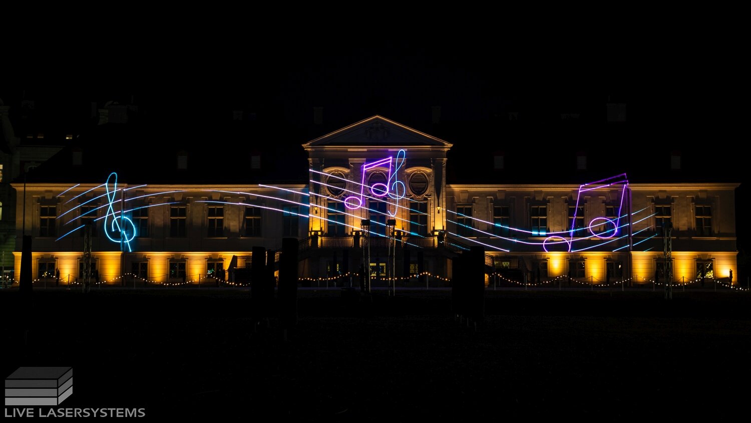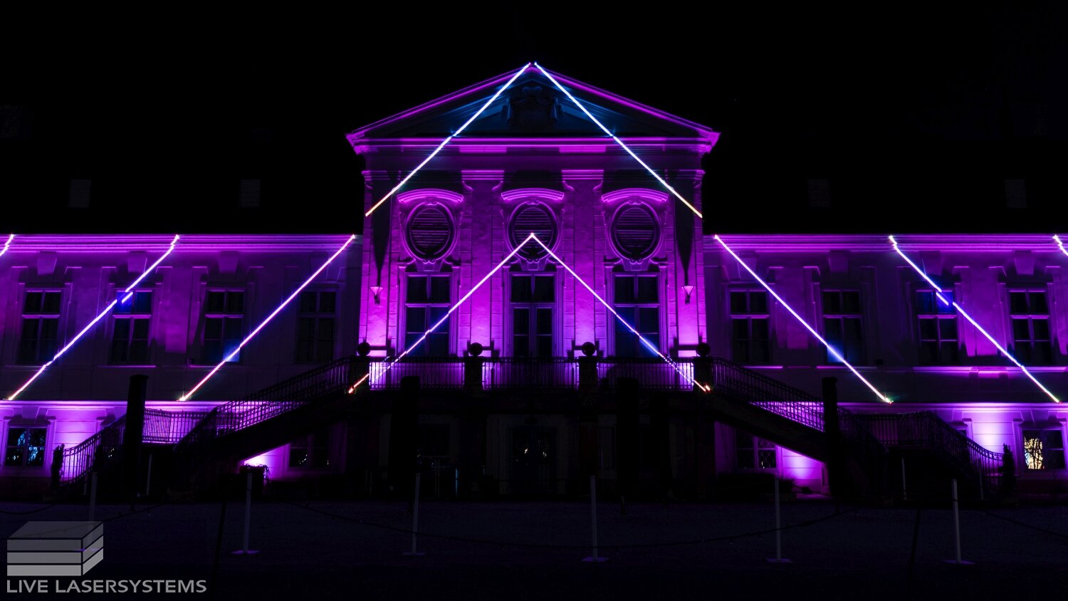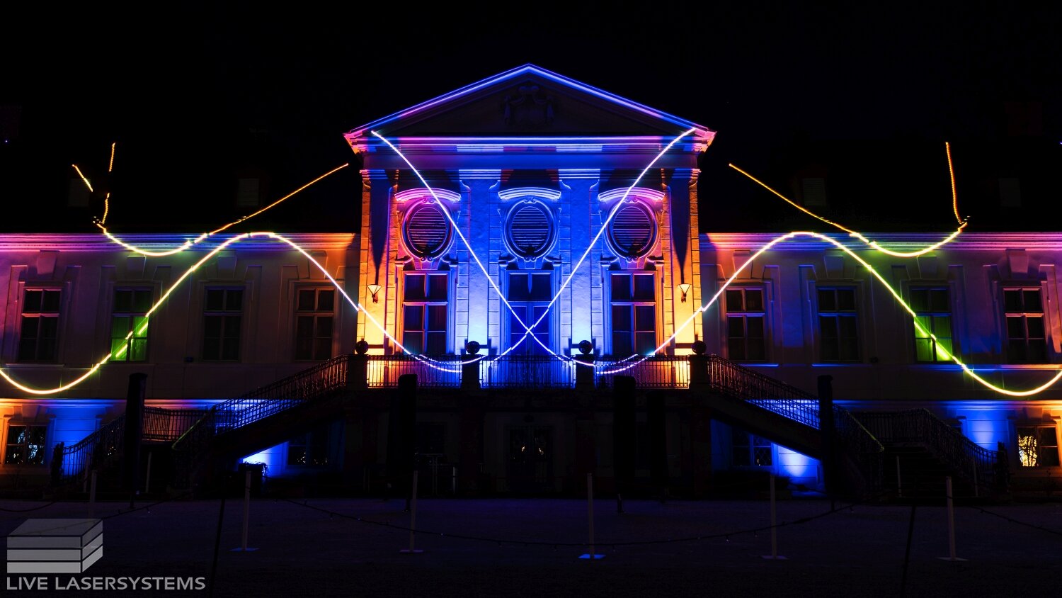 The content creation (laser&lights) was fully performed by LIVE Lasersystems' very own designer Martin Nowosad who previsualized the whole show with Depence². Graphics projections as well as contour mappings were ditributed over the whole building using a complex multi-zone setup. Besides this, the laser projection featured custom 3D mapped particle effects which interacted with the lighting installations. The whole multimedia installation was designed to run fully automated according to a fixed time schedule and were synchronized using timecode.