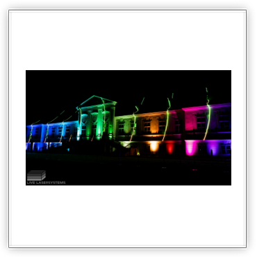 Service: Laser projection, laser projection mapping, custom 3D mapped laser particle effects